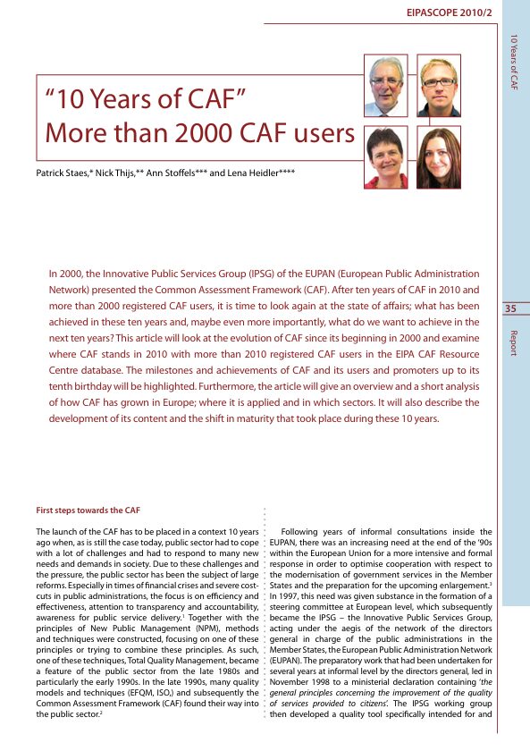 - Стаес, П., Тійс, Н., Стоффельс, А., Гелдоф, С. (2011) П'ять років CAF 2006: від підліткового віку до зрілості – що далі? (англ. мовою)