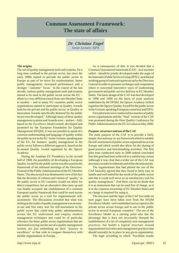 Енгель Крістіан, Фіцпатрік Шон (2003). Дослідження використання Загальної схеми оцінювання (CAF) в європейських державних адміністраціях (англ. мовою)