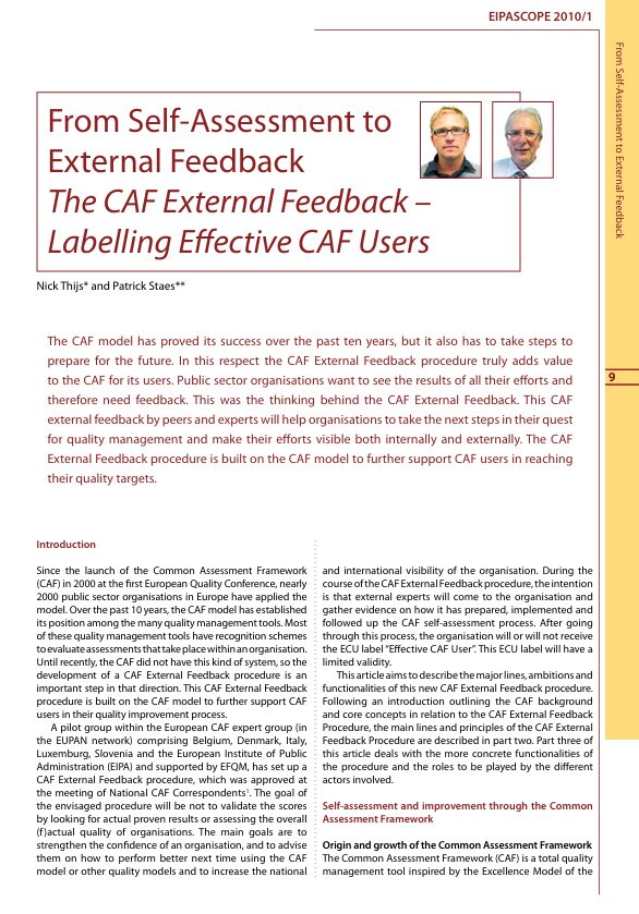 - Тійс, Н., та Стаес, П. (2010) Від самооцінювання до зовнішнього зворотного зв’язку: зовнішній зворотній зв’язок CAF: визначення ефективних користувачів CAF (англ. мовою)