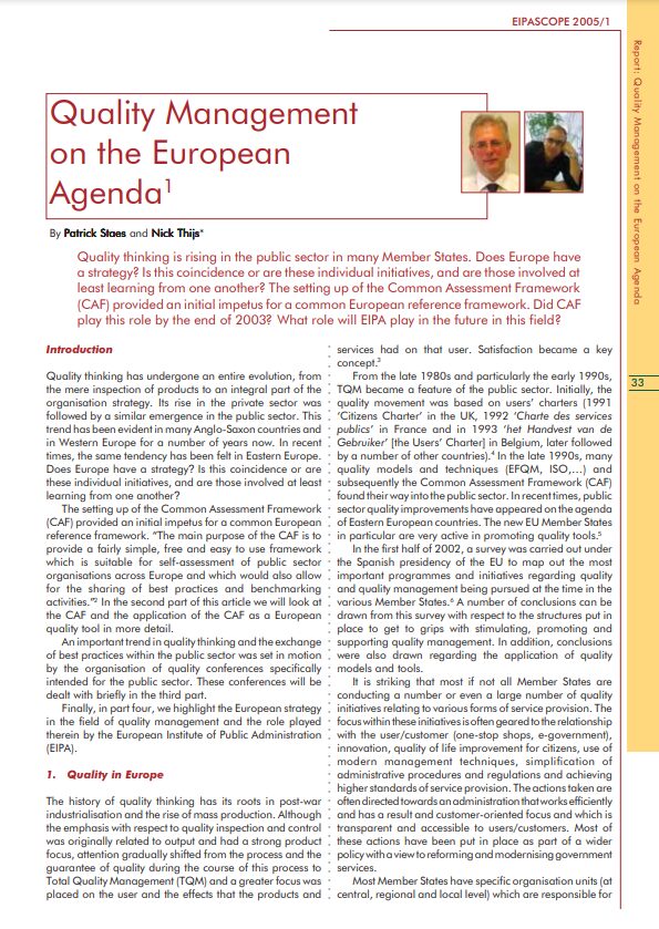 - Стаес, Патрік і Тійс, Нік. (2005) Управління якістю на європейському порядку денному (англ. мовою)