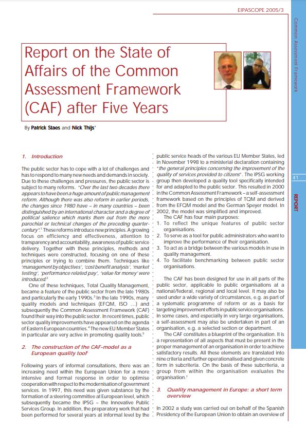 - Стаес, П., і Тійс, Н. (2005) Звіт про стан справ Загальної схеми оцінювання (CAF) через п’ять років (англ. мовою)
