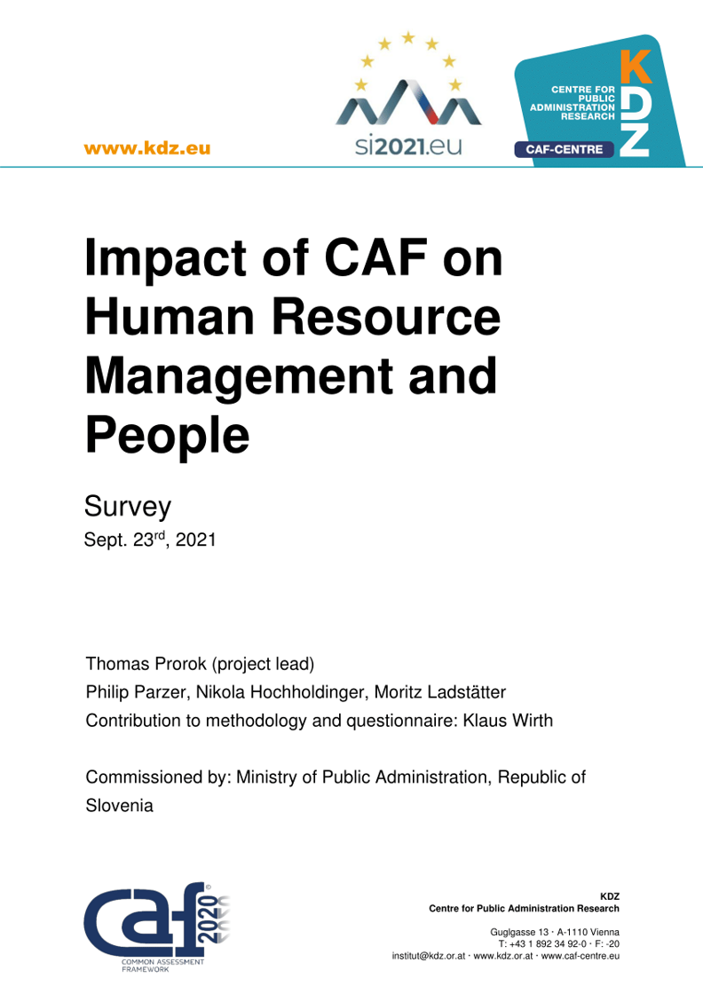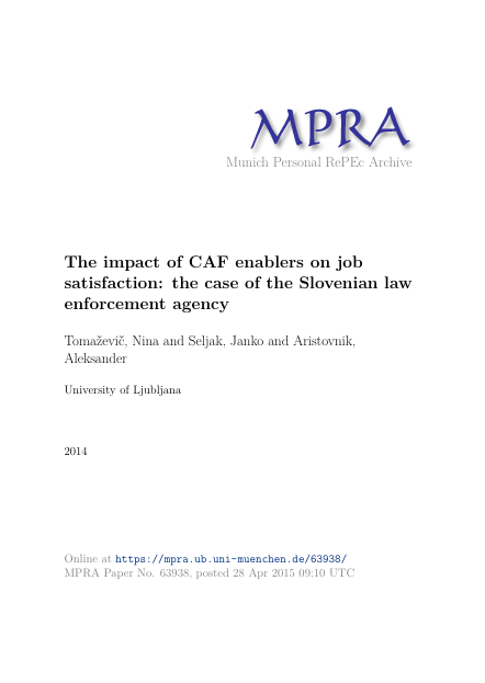 - Томаєвич Н., Селяк Я. та Арістовнік О. (2014) Вплив стимулюючих засобів CAF на задоволеність роботою: випадок словенського правоохоронного органу (англ. мовою)